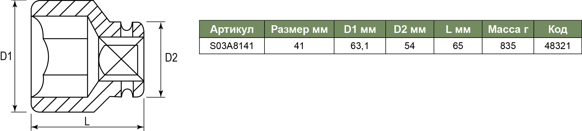 S03A8141 Головка торцевая ударная 1"DR, 41 мм, код товара: 48321, артикул: S03A8141