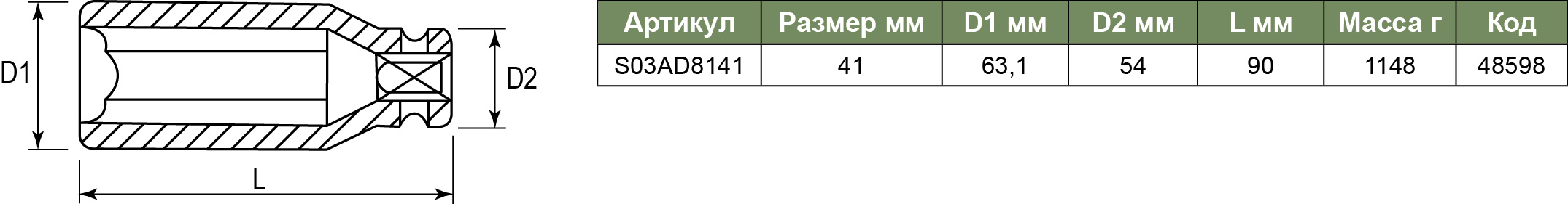 S03AD8141 Головка торцевая ударная глубокая 1"DR, 41 мм, код товара: 48598, артикул: S03AD8141
