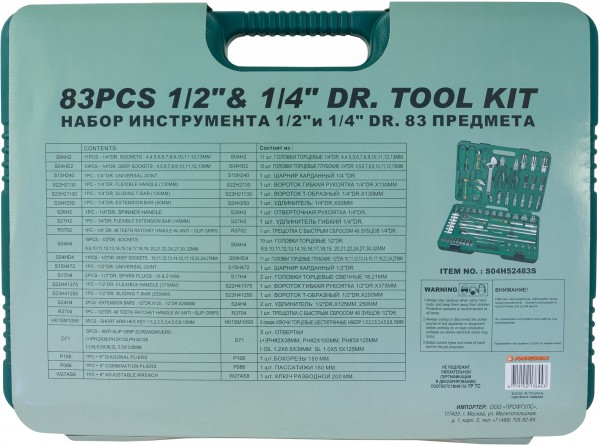 S04H52483S Набор инструмента универсальный 1/4", 1/2"DR, 83 предмета, код товара: 48507, артикул: S04H52483S