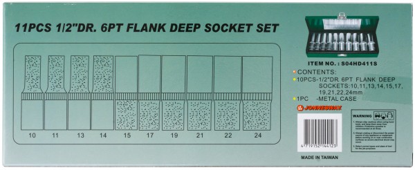 S04HD411S Набор головок торцевых глубоких 1/2"DR, 10-24 мм, 11 предметов, код товара: 47243, артикул: S04HD411S