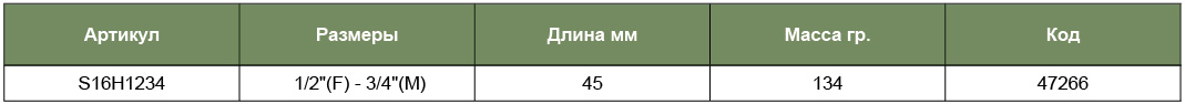 S16H1234 Переходник 1/2"DR(F)*3/4"DR(M), код товара: 47266, артикул: S16H1234