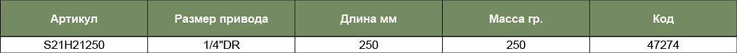 S21H21250 Удлинитель с шаром 1/4"DR, 250 мм, код товара: 47274, артикул: S21H21250
