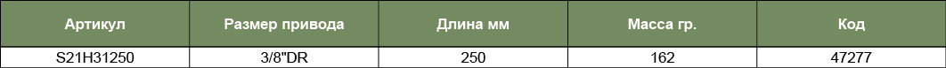 S21H31250 Удлинитель с шаром 3/8"DR, 250 мм, код товара: 47277, артикул: S21H31250
