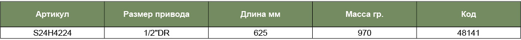 S24H4224 Удлинитель 1/2"DR, 625 мм, код товара: 48141, артикул: S24H4224