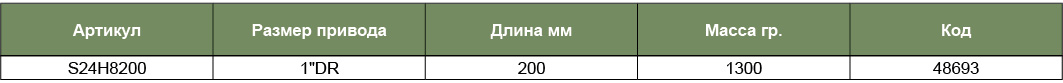 S24H8200 Удлинитель 1"DR, 200 мм, код товара: 48693, артикул: S24H8200