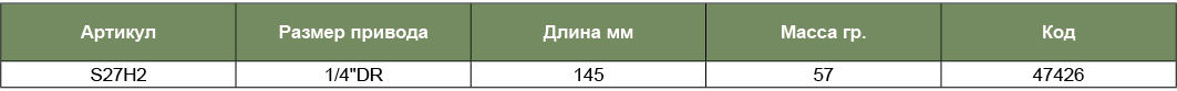 S27H2 Удлинитель гибкий 1/4"DR, 145 мм, код товара: 47426, артикул: S27H2