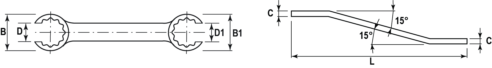 Сочетают в своей конструкции способность передавать высокие нагрузки, как накидной ключ, с удобством рожкового. Разрезные ключи применяются, в первую очередь, для обслуживания штуцеров трубопроводов, когда использование рожкового ключа может повредить деталь, а применение накидного или торцевой головки невозможно. Инструменты производятся из хромованадиевой стали по стандарту DIN 3118 и соответствует требованиям ГОСТ 10112-2001 по размерному ряду.