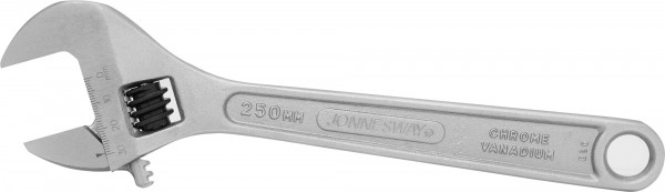 Разводной гаечный ключ с зауженными губками. Прецизионно изготовленные детали механизма перемещения подвижной губки обеспечивает минимальные рабочие зазоры и плавную регулировку. Ключ изготовлен из хромованадиевой стали по стандарту DIN 3117, ANSI/ASME B107.8M, полностью соответствует ГОСТу 7275-75. Имеет хромоникелевое покрытие и матовую отделку, снабжен метрической и дюймовой размерными шкалами.