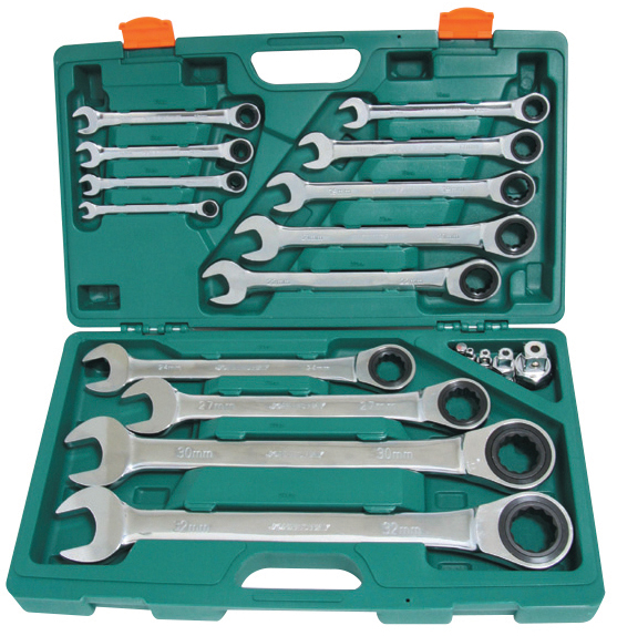 Гаечный комбинированный ключ представляет собой конструкцию, объединяющую рожковый профиль и накидной профиль с рабочей частью со встроенным храповым механизмом. Сочетание двух одноразмерных профилей компенсируют недостатки каждого в отдельности. Храповой механизм с колесом в 72 зуба обеспечивает высокий передаваемый крутящий момент благодаря применяемой хромованадиевой стали, закаленной особым способом. Малый, 5°, обратный ход делает ключ незаменимым в ограниченном рабочем пространстве.