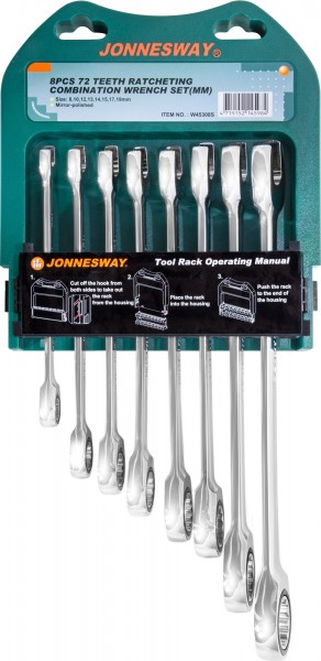 W45308S Набор ключей гаечных комбинированных трещоточных на держателе, 8-19 мм, 8 предметов, код товара: 48389, артикул: W45308S