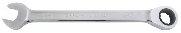 Применяется для обслуживания крепежа при свободном вращении. Малый, 5°, обратный ход делает ключ незаменимым в ограниченном рабочем пространстве. Храповой механизм с колесом в 72 зуба обеспечивает высокий передаваемый крутящий момент благодаря применяемой хромованадиевой стали, закаленной особым способом. Механизм переключения направления вращения упрощает применение изделия, а изогнутая под углом 15° накидная часть - доступ. Ключ изготовлен по стандарту ANSI, имеет трехслойное хромоникелевое покрытие, зеркально отполирован.