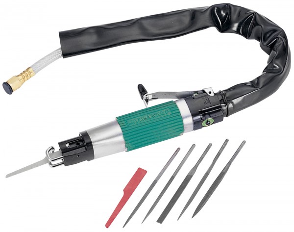 Ножовка пневматическая 5000 цикл/мин, с ходом 10 мм. Пневматическая ножовка – универсальный инструмент возвратно-поступательного действия. При проведении работ необходимо применять средства защиты рук, органов зрения, дыхания и слуха.