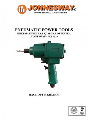 На пневматический механизированный инструмент торговой марки JONNESWAY® распространяется понятие «ограниченной гарантии», в связи с сокращением срока эксплуатации, связанным с повышенным износом некоторых деталей конструкции при использовании. Срок эксплуатации изделия с заявленными характеристиками определен в 12 месяцев с начала использования инструмента. Начало эксплуатации определяется по дате продажи, указанной в гарантийном талоне JONNESWAY® или фискальном документе, подтверждающем факт приобретения конкретного изделия. Срок применения инструмента с объявленными характеристиками может быть изменен индивидуально, как в сторону уменьшения, так и в сторону увеличения в зависимости от интенсивности и условий эксплуатации конкретного изделия (группы изделий).