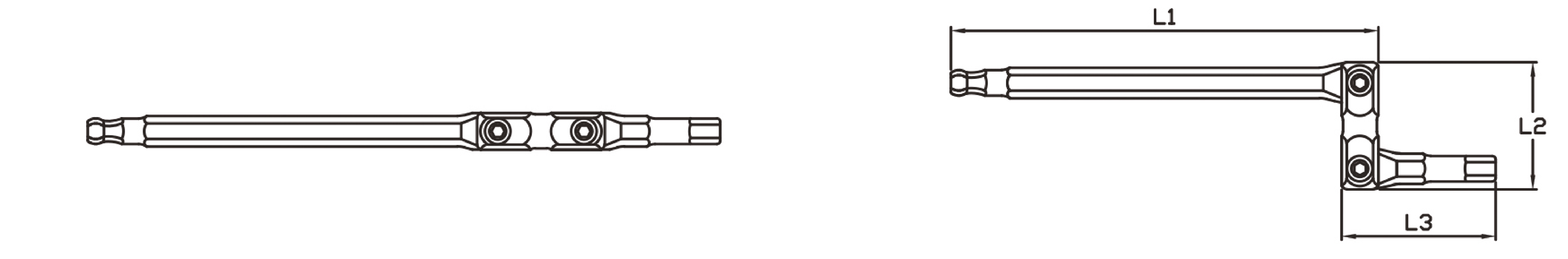 Согнутый под углом 90° стержень с рабочими профилями одного размера на обоих концах, сочетает в себе относительное удобство использования с возможностью приложения значительных рабочих нагрузок, когда в качестве ручки используется длинная часть и работу в труднодоступных местах, когда в качестве воротка используется короткая. Специальные угловые отвертки, изготовленные из стали S2.