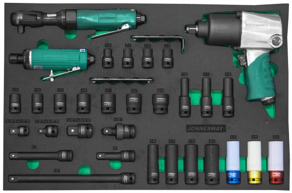 JA-C231SV Набор пневматического инструмента 1/2"DR и аксессуаров к ударному инструменту в EVA ложементе 560х400 мм, 31 предмет, код товара: 49274, артикул: JA-C231SV