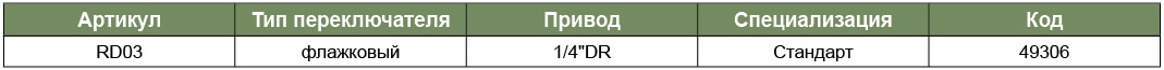 RD03 Рукоятка трещоточная 1/4"DR, мини, 60 зубцов, код товара: 49306, артикул: RD03