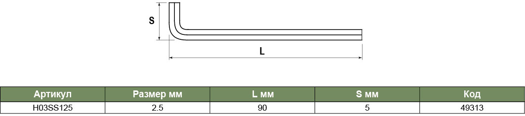 H03SS125 Ключ торцевой шестигранный удлиненный для труднодоступных мест, Н2.5, код товара: 49313, артикул: H03SS125