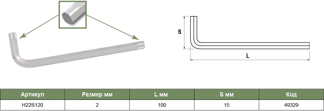H22S120 Ключ торцевой шестигранный удлиненный для изношенного крепежа, H2, код товара: 49329, артикул: H22S120