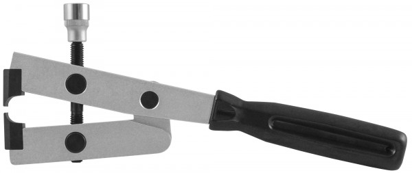 Приспособление применяется для установки новых “замковых” хомутов пыльников ШРУСов, изготовленных из нержавеющей стали, при монтаже которых рекомендовано дозированное воздействие на соединение. Правильно использовать изделие в сочетании с динамометрическим ключом с приводом 1/4"DR.