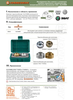 AL010089 Инструмент для снятия и установки клапана управления смещением фаз газораспределения двигателей VAG TFSI 1.8 л, 2.0 л., код товара: 49443, артикул: AL010089