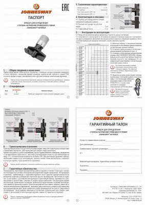 Претензии по отношению к инструменту, вышедшему из строя в течение гарантийного срока, принимается к рассмотрению уполномоченным представителем JONNESWAY® ENTERPRISE CO., LTD., в соответствии с Законом «О Защите прав потребителя».