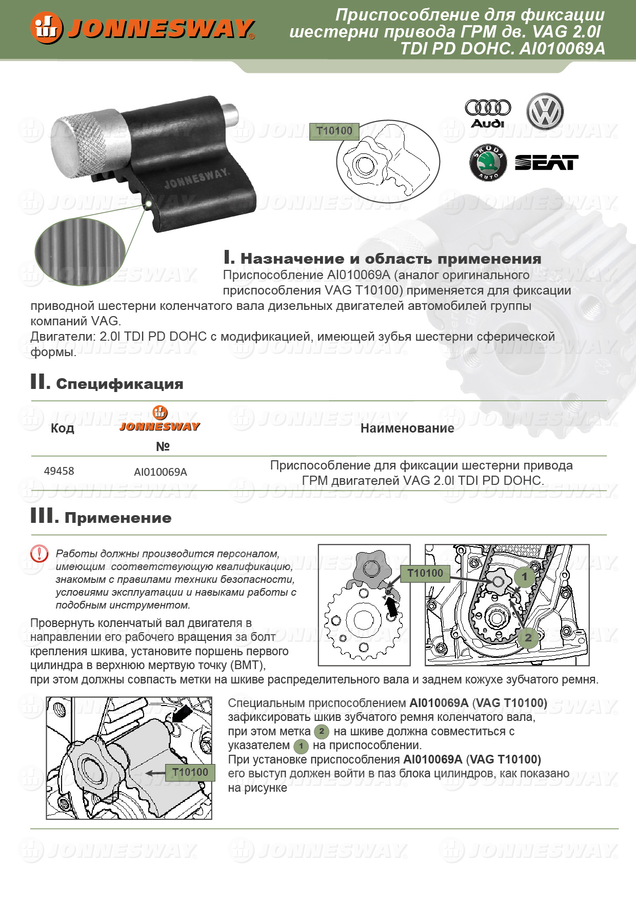 AI010069A Приспособление для фиксации шестерни привода валов ГРМ двигателей VAG 2.0l TDI PD DOHC., код товара: 49458, артикул: AI010069A