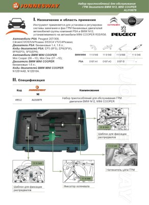 AL010079 Набор приспособлений для обслуживания ГРМ двигателя BMW N12, MINI COOPER, код товара: 49512, артикул: AL010079