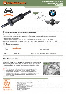 Приспособление применяется для натяжения цепи при проведении работ по обслуживанию газораспределительного механизма автомобилей марок BMW и MINI различных модификаций.