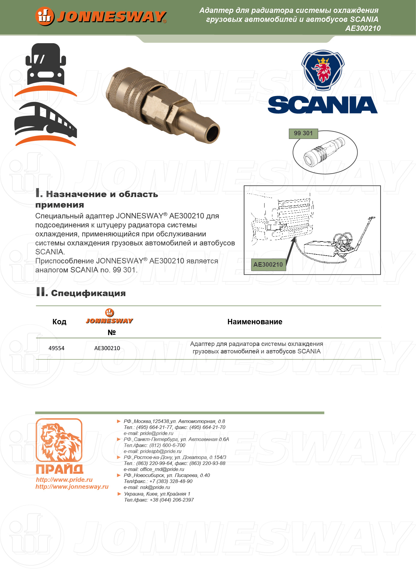 AE300210 Адаптер для радиатора системы охлаждения SCANIA, код товара: 49554, артикул: AE300210