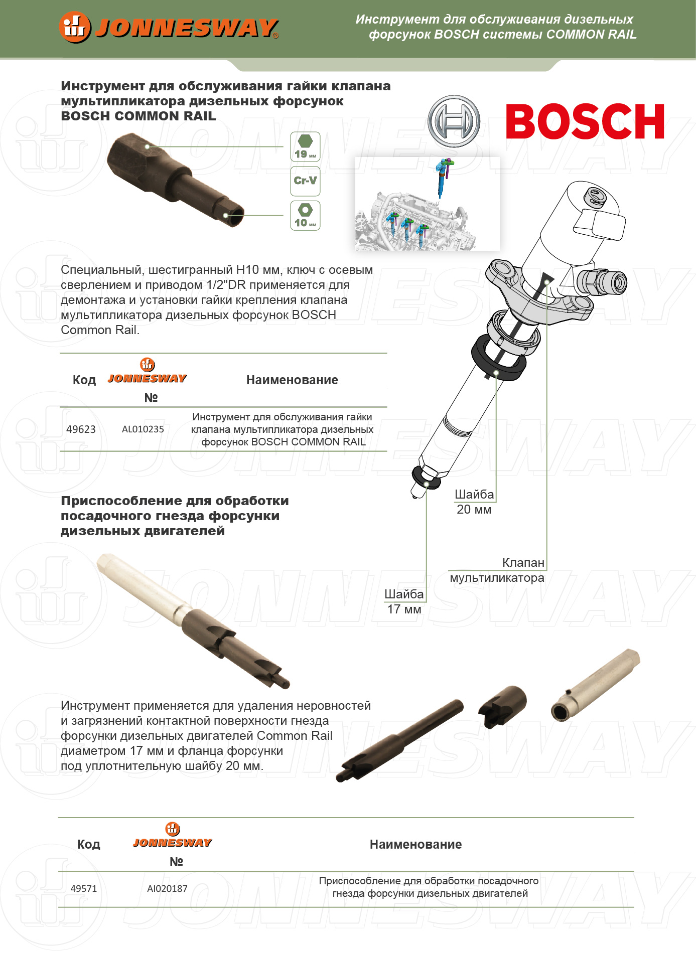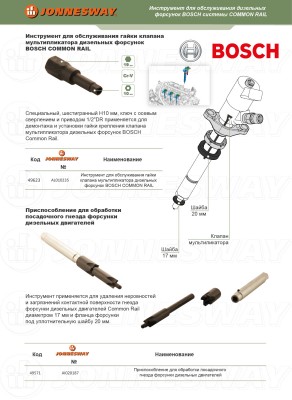 Инструменты и приспособления специального назначения производства компании JONNESWAY® ENTERPRISE CO., LTD., по уровню исполнения относятся к изделиям класса PROFESSIONAL, применяется для производства работ по сборке, ремонту и обслуживания продукции машиностроения, строго персоналом, имеющим соответствующую квалификацию, знакомым с правилами техники безопасности, условиями эксплуатации и навыками работы со специальным инструментом и приспособлениями.