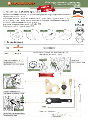 AL010229 Набор приспособлений для установки фаз ГРМ двигателей RENAULT 2.0 DCI, код товара: 49620, артикул: AL010229