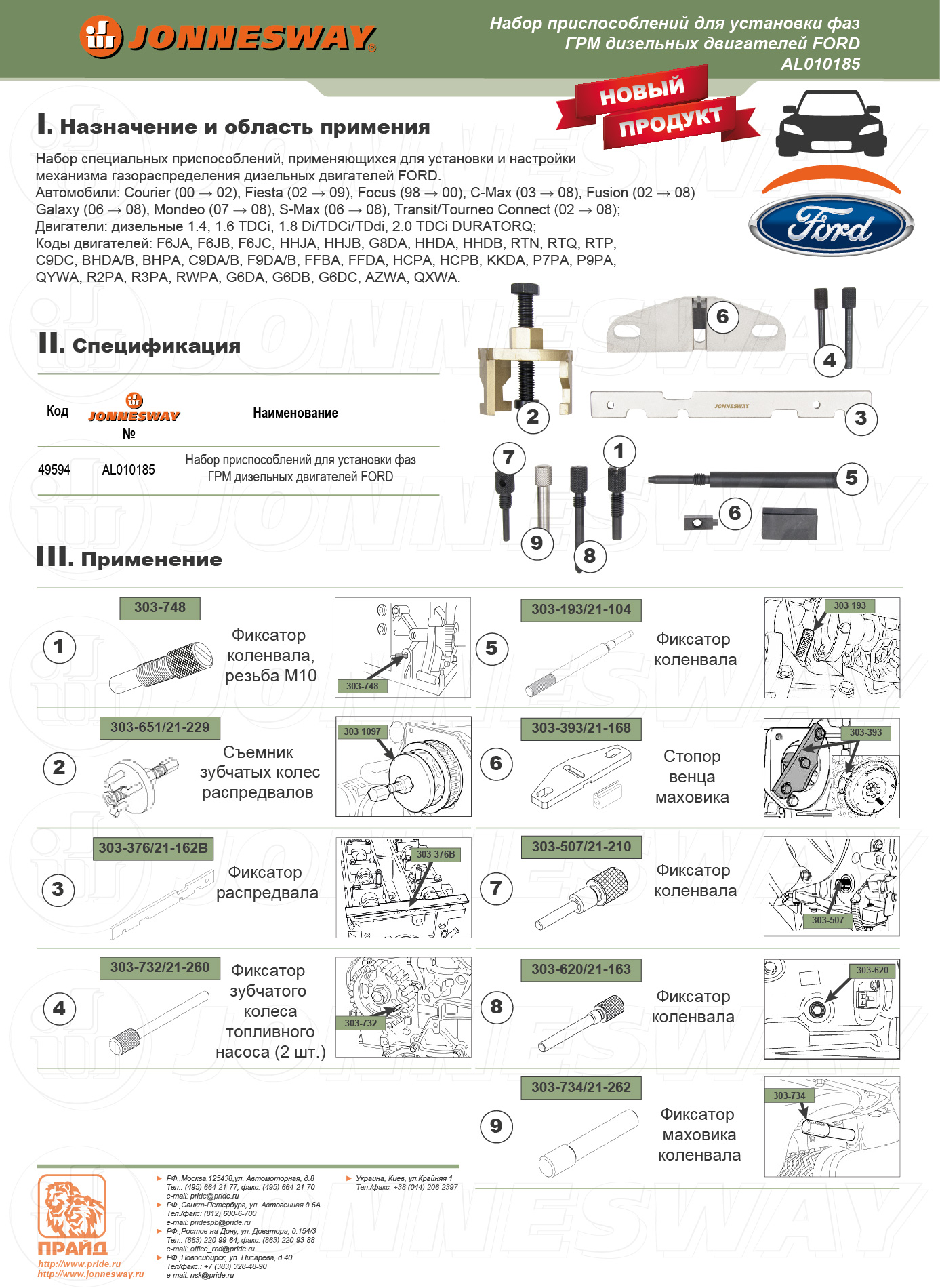 AL010185 Набор приспособлений для установки фаз ГРМ дизельных двигателей FORD., код товара: 49594, артикул: AL010185