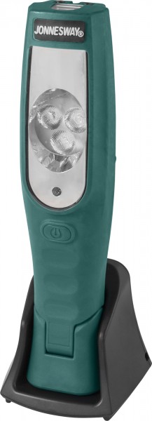 Лампа переносная светодиодная на гибком магнитном основании, зарядка 12-220V. В основание водозащищенного корпуса установлены мощные, неодимовые магниты, позволяющие прикреплять с их помощью к железосодержащим предметам лампы в любом положении, а подвижный, в диапазоне 120⁰ корпус устанавливать нужный угол освещения рабочего пространства. В верхней части корпуса изделия установлен крючок с возможностью вращения на 360⁰ для подвешивания лампы. Основное освещение, расположенное на фронтальной части ламп состоит из трех сверхярких люминофорных светодиодов суммарной мощностью 9 w. В верхней торцевой части изделия установлен 3 w люминофорный светодиод, Емкость литий-ионного аккумулятора составляет 2250 мАч, что обеспечивает работу лампы в течение 8 часов, напряжение 3,6 в. Противоударный, полностью обрезиненный корпус, имеет структурированную поверхность, что предотвращает выскальзывание лампы из рук.