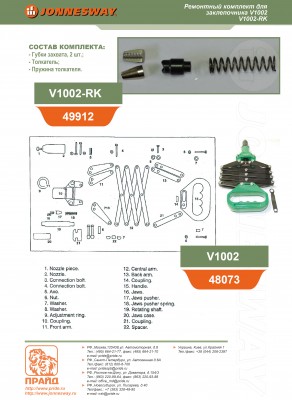 Ремонтный комплект для заклепочников V1000, V1001, V1002, V1004, V1005, из 4-х предметов.