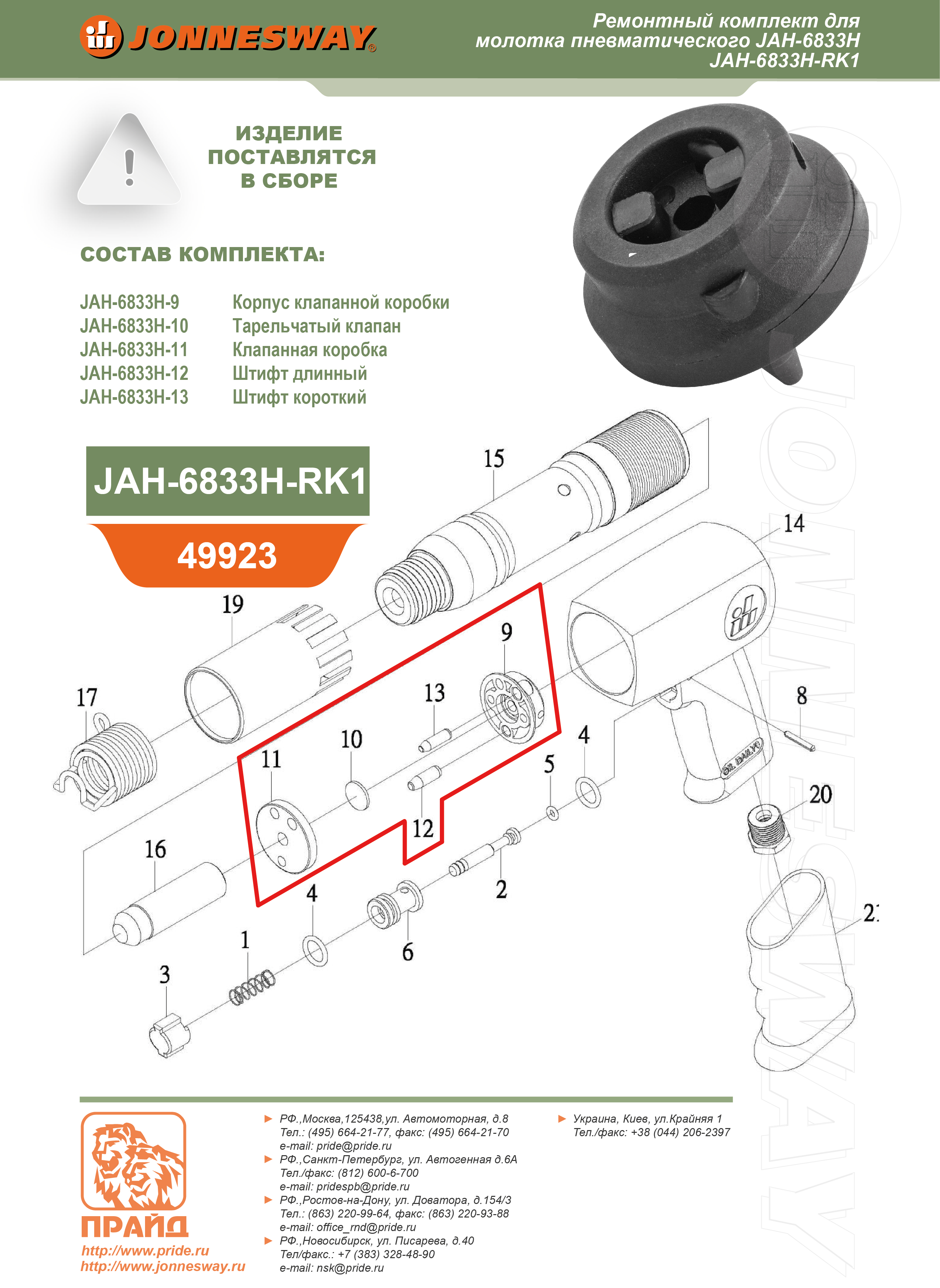 JAH-6833H-RK1 Ремонтный комплект для молотка пневматического JAH-6833H, код товара: 49923, артикул: JAH-6833H-RK1