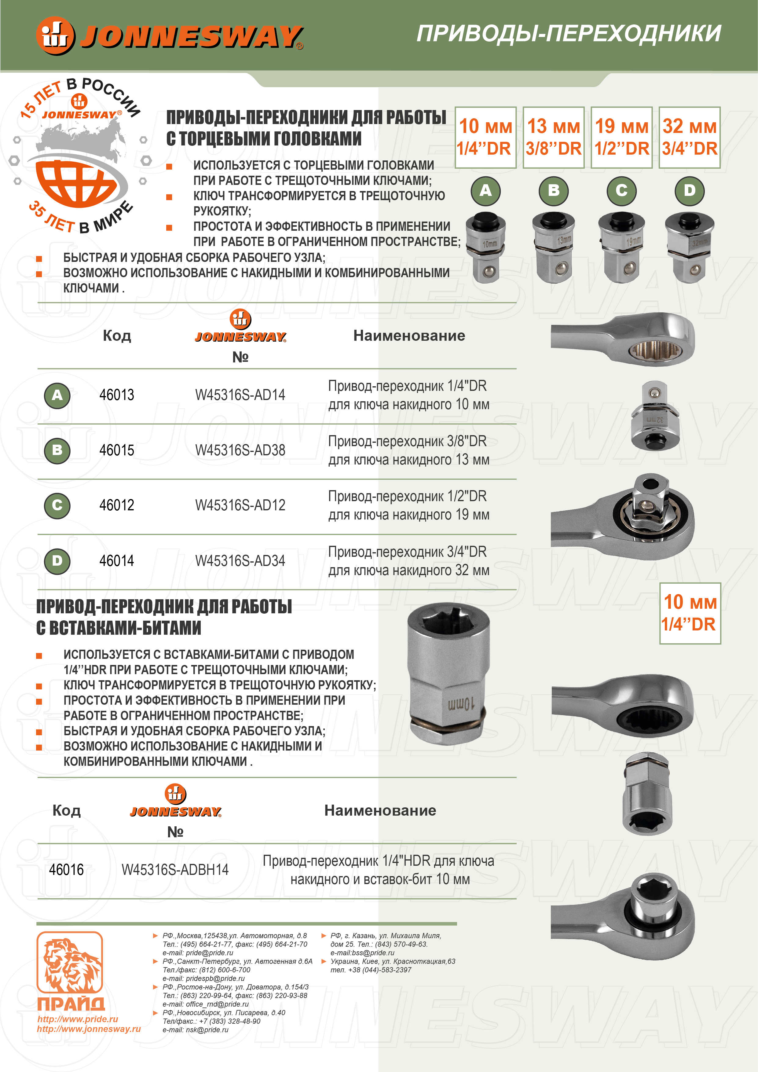 Привод-переходник для трещоточных ключей используется для присоединения к трещоточной части ключа торцевых головок - таким ключ трансформируется в трещоточную рукоятку. Изделие выполнено из легированной высококачественной стали и обеспечивает простоту и эффективность при работе.