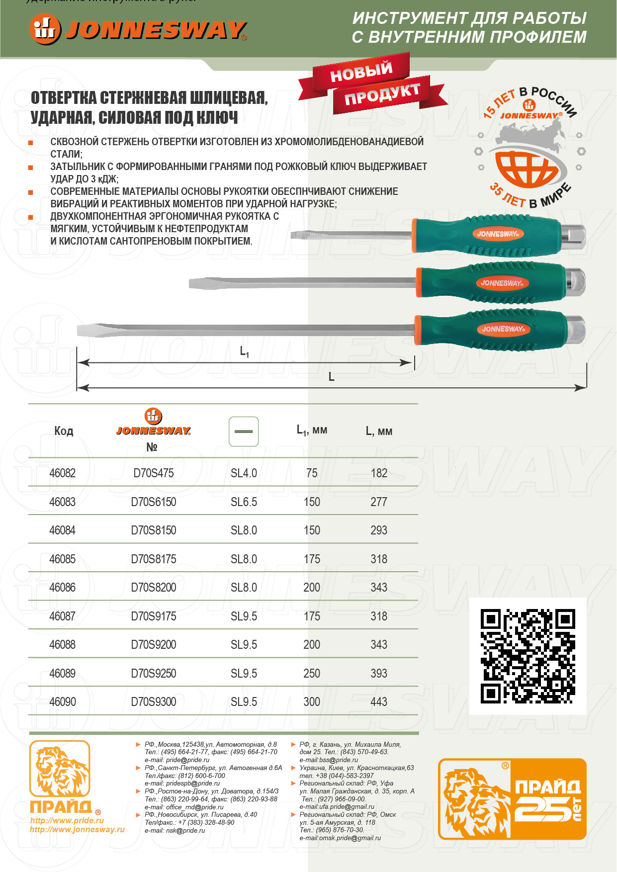 Инструменты для обслуживания внутренних рабочих профилей JONNESWAY® ENTERPRISECO., LTD., (отвертки стержневые и угловые и насадки являющиеся частью сборного слесарно-монтажного инструмента),по уровню исполнения относятся к изделиям класса PROFESSIONAL, применяются для производства работ по сборке, ремонту и обслуживания продукции машиностроения, персоналом, имеющим соответствующую квалификацию, знакомым с правилами техники безопасности, условиями эксплуатации и навыками работы.