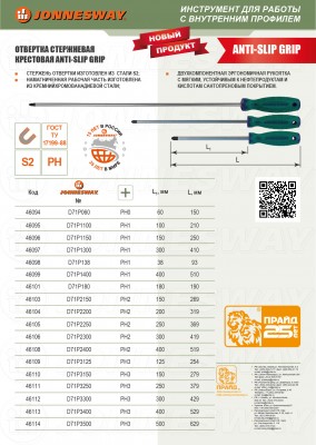 D71P060 Отвертка стержневая крестовая ANTI-SLIP GRIP, PH0x60 мм, код товара: 46094, артикул: D71P060