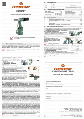 На пневматический механизированный инструмент торговой марки JONNESWAY® распространяется понятие «ограниченной гарантии», в связи с сокращением срока эксплуатации, связанным с повышенным износом некоторых деталей конструкции при использовании. Срок эксплуатации изделия с заявленными характеристиками определен в 12 месяцев с начала использования инструмента. Начало эксплуатации определяется по дате продажи, указанной в гарантийном талоне JONNESWAY® или фискальном документе, подтверждающем факт приобретения конкретного изделия. Срок применения инструмента с объявленными характеристиками может быть изменен индивидуально, как в сторону уменьшения, так и в сторону увеличения в зависимости от интенсивности и условий эксплуатации конкретного изделия (группы изделий).