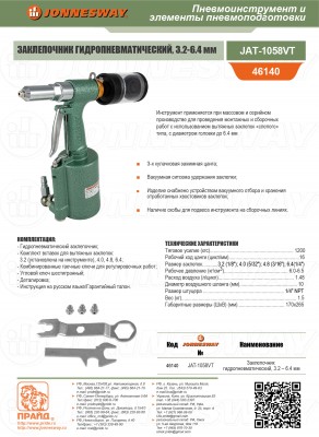 JAT-1058VT Заклепочник гидропневматический, 3.2 – 6.4 мм, код товара: 46140, артикул: JAT-1058VT