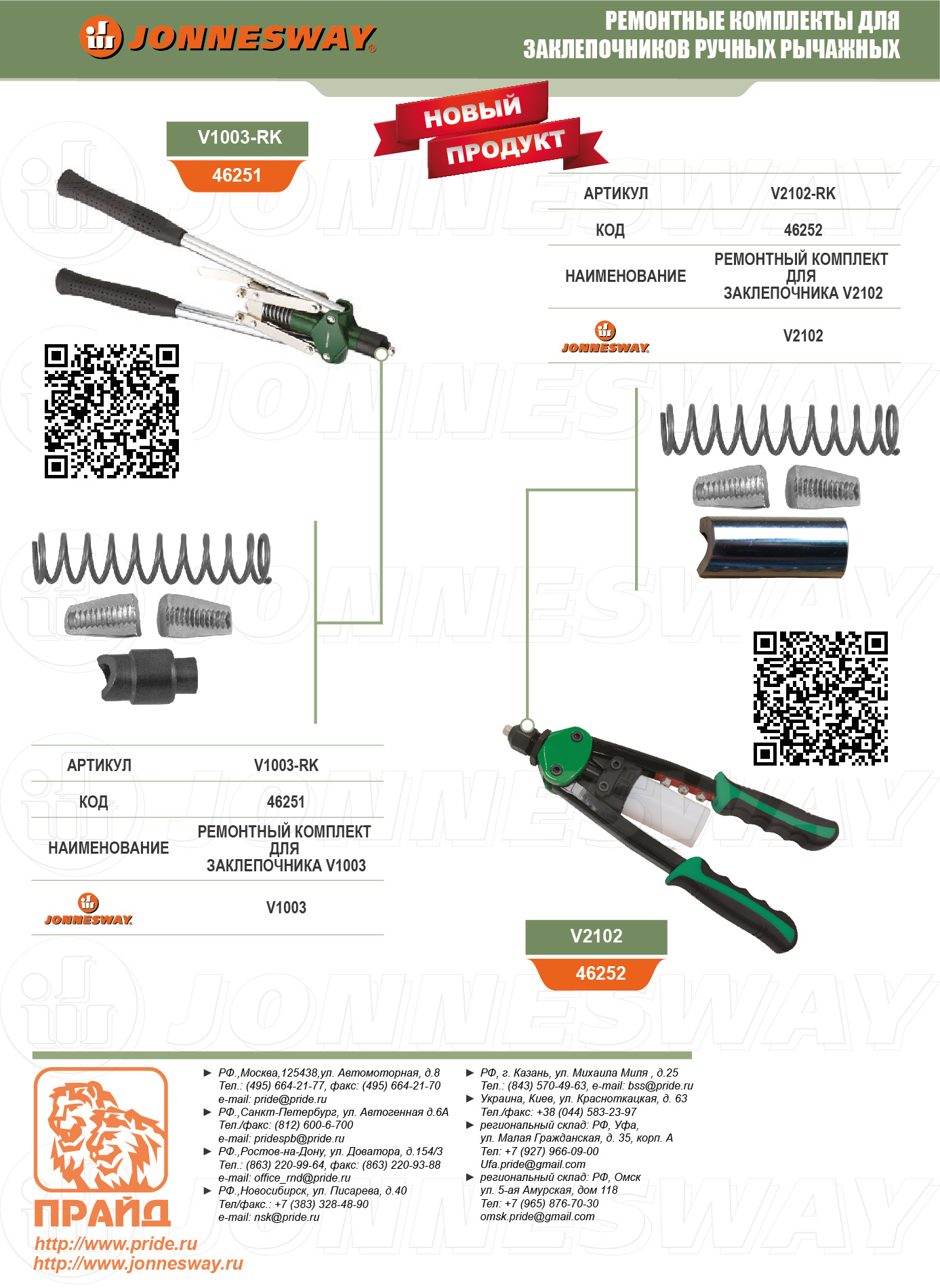 V1003-RK Ремонтный комплект для заклепочника V1003, код товара: 46251, артикул: V1003-RK