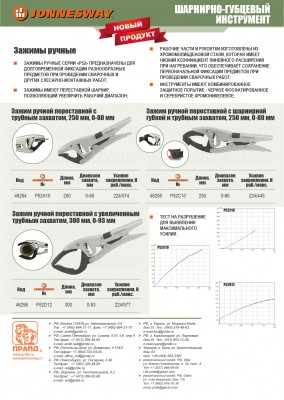 P52C10 Зажим ручной переставной с шарнирной губкой и трубным захватом, 250 мм, 0-80 мм, код товара: 46295, артикул: P52C10