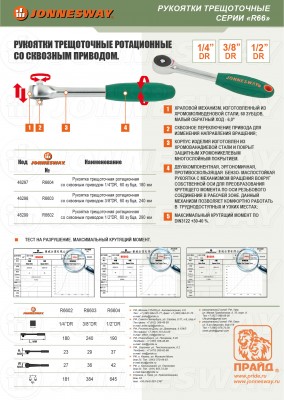 Трещоточные рукоятки компании JONNESWAY® ENTERPRISECO., LTD., являющиеся частью сборного слесарно-монтажного инструмента,по уровню исполнения относятся к изделиям класса PROFESSIONAL, применяются для производства работ по сборке, ремонту и обслуживания продукции машиностроения, персоналом, имеющим соответствующую квалификацию, знакомым с правилами техники безопасности, условиями эксплуатации и навыками работы.