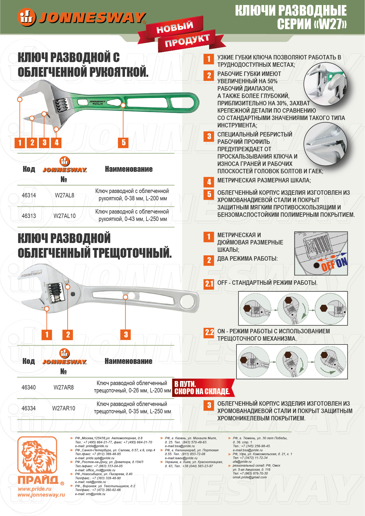 W27AR10 Ключ разводной облегченный трещоточный, 0-35 мм, L-250 мм, код товара: 46334, артикул: W27AR10