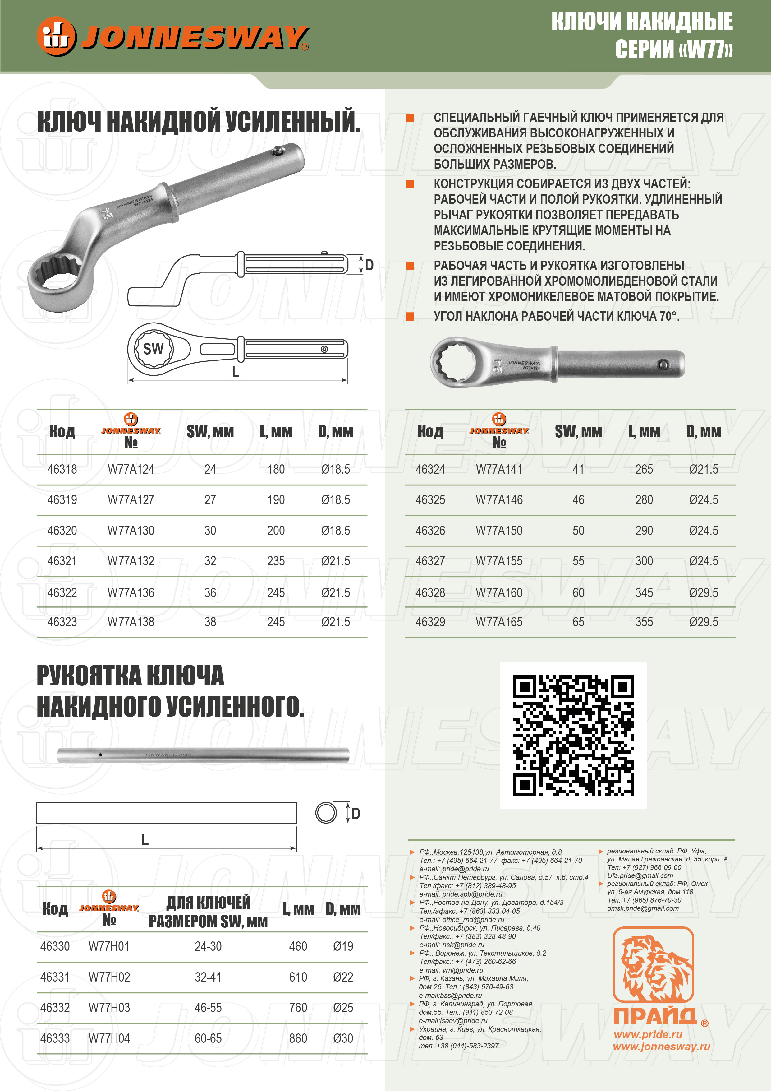 Ключи необходимо доукомплектовать рукоятками серии W77H для увеличения крутящего момента при проведении монтажных и демонтажных работ.